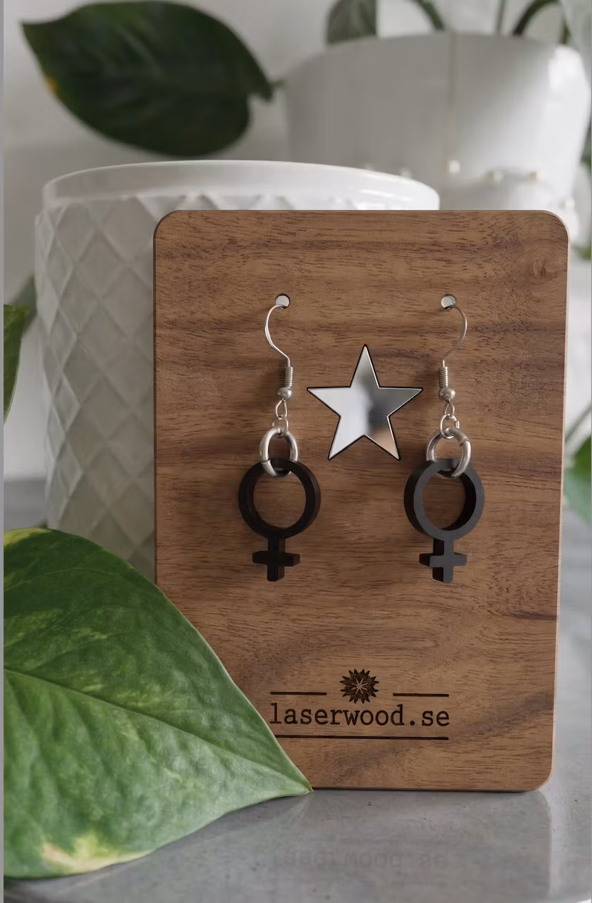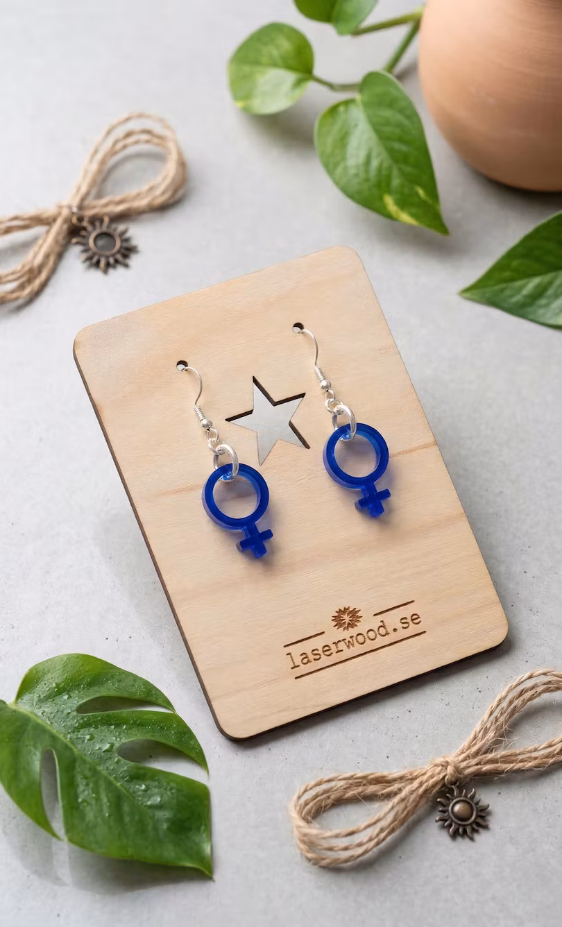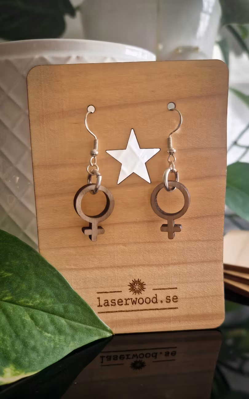 Örhänget är tillverkat i trä eller akryl. Hänget är i 925 silver. Längden på Liten är 4 cm. Örhängena är mycket lätta och trevliga att bära. Välj färg vid